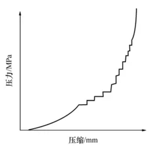 在這個階段中,耐火磚成型壓力已增加到能使泥料內(nèi)顆粒發(fā)生脆性和彈性變形的程度,所以在壓制時由于泥料內(nèi)顆粒受壓變形和多角型顆粒的棱角被壓掉,從而使坯體內(nèi)顆粒間的接觸面增加,摩擦阻力增大。因此,使這一階段的壓制特性表現(xiàn)為跳躍式的壓縮變化,即呈階梯形變化曲線;當壓制進入第三階段時,成型壓力已超過臨界壓力,即使壓力再升高,坯體幾乎不再被壓縮。下圖的這種耐火磚對模具的要求和壓力機的選擇都要求很高。