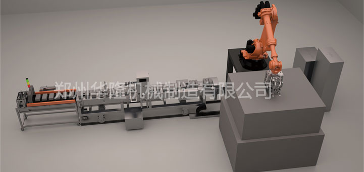 根據制品形狀尺寸設計專用夾具,采用機器人取磚碼垛工作效率高,動作精準統一,24小時工作無疲勞。(機器人選型根據負載和使用要求來選型)